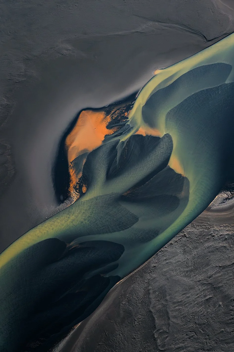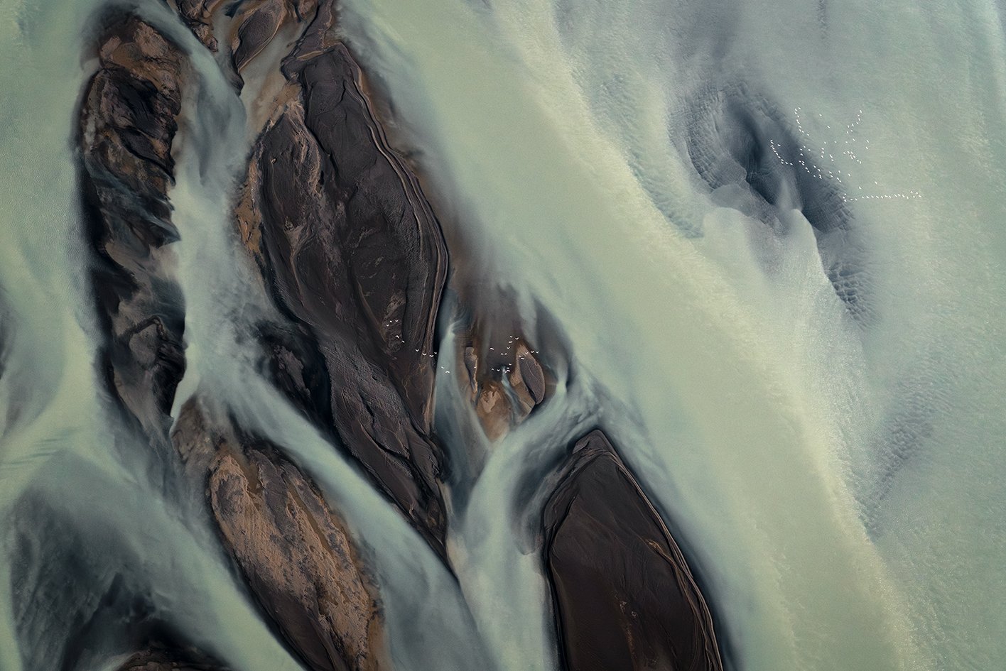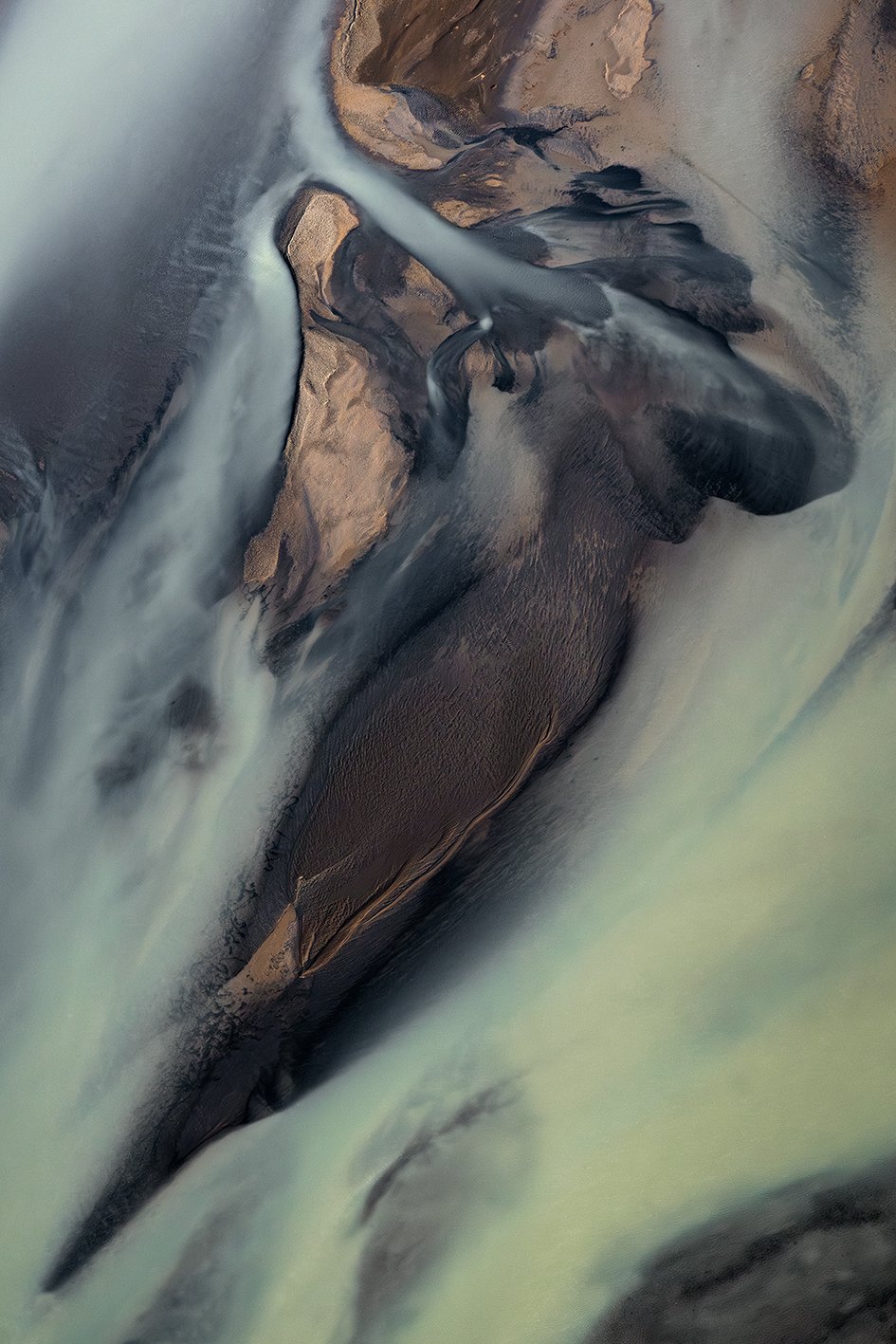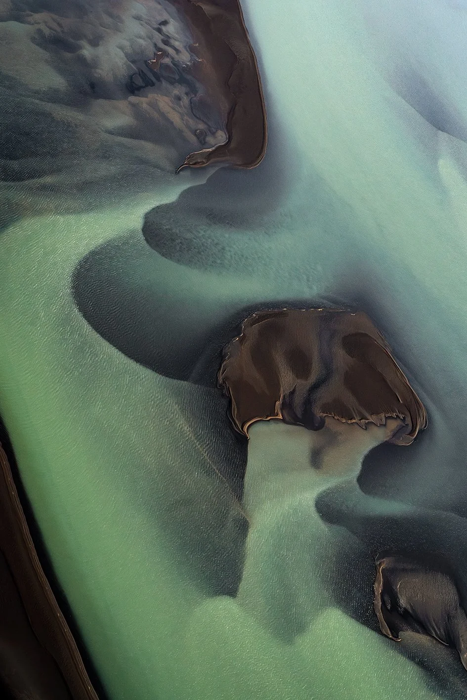 L’Islande m'accompagne depuis près de quinze ans. En 2021, je l’ai survolée. Un seul vol, deux heures suspendues dans les airs, et le temps s’est effacé, laissant place à un émerveillement sans fin : les rivières glaciaires, sinueuses et vivantes, révèlent une géographie en perpétuelle transformation et dessinent la terre comme une œuvre en mouvement.