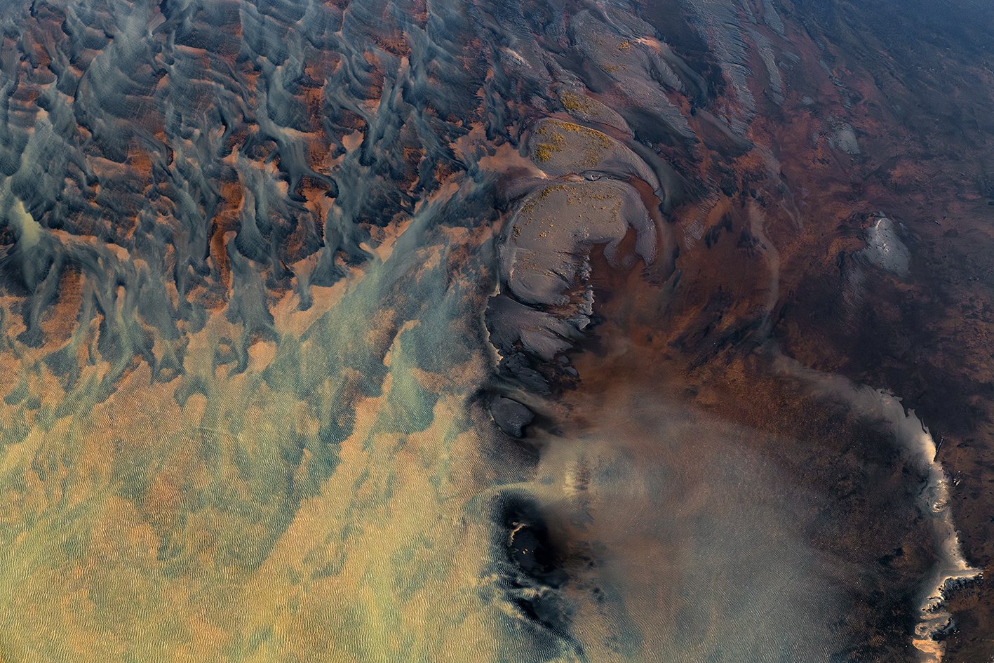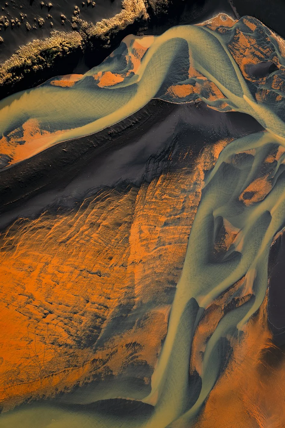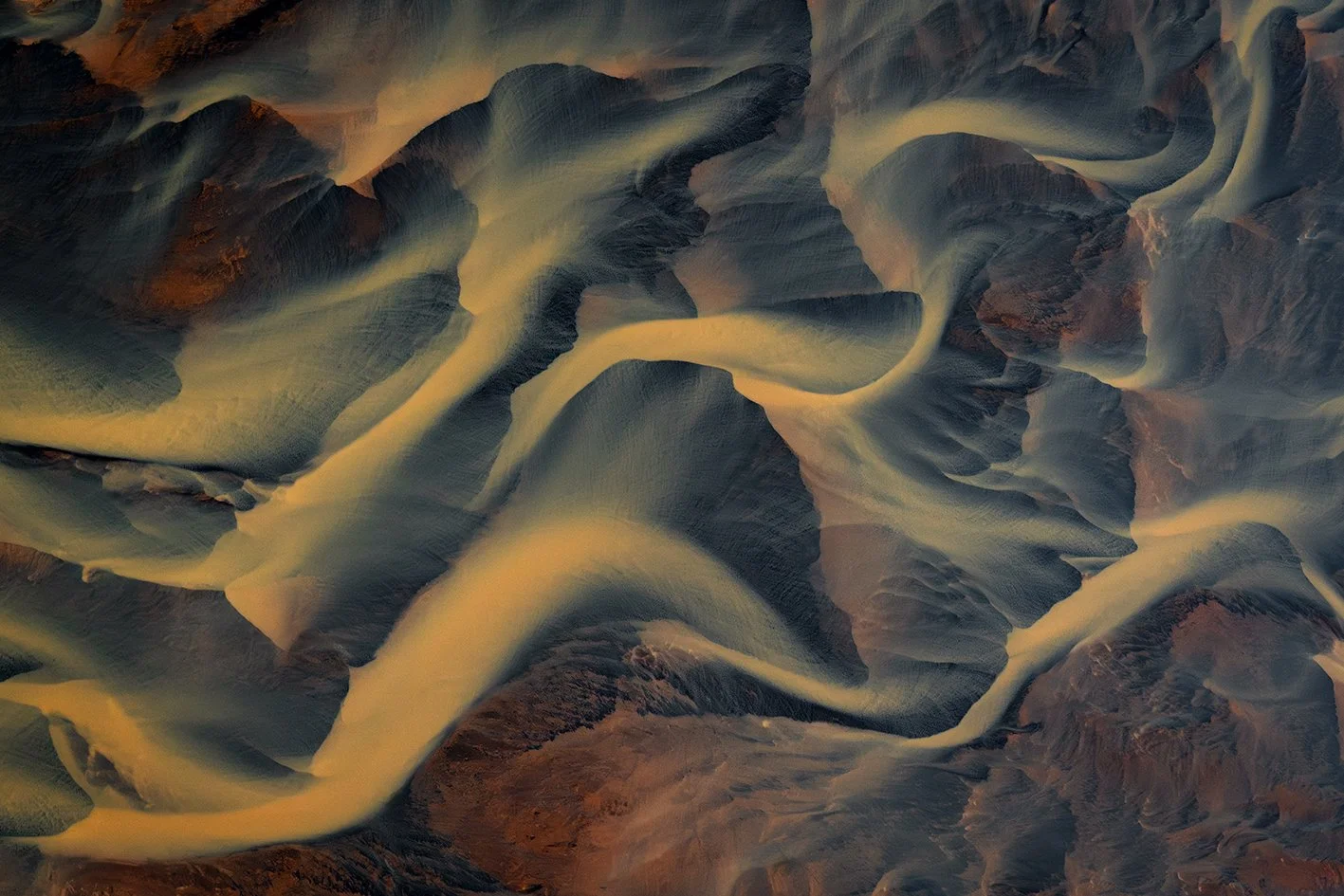 L’Islande m'accompagne depuis près de quinze ans. En 2021, je l’ai survolée. Un seul vol, deux heures suspendues dans les airs, et le temps s’est effacé, laissant place à un émerveillement sans fin : les rivières glaciaires, sinueuses et vivantes, révèlent une géographie en perpétuelle transformation et dessinent la terre comme une œuvre en mouvement.