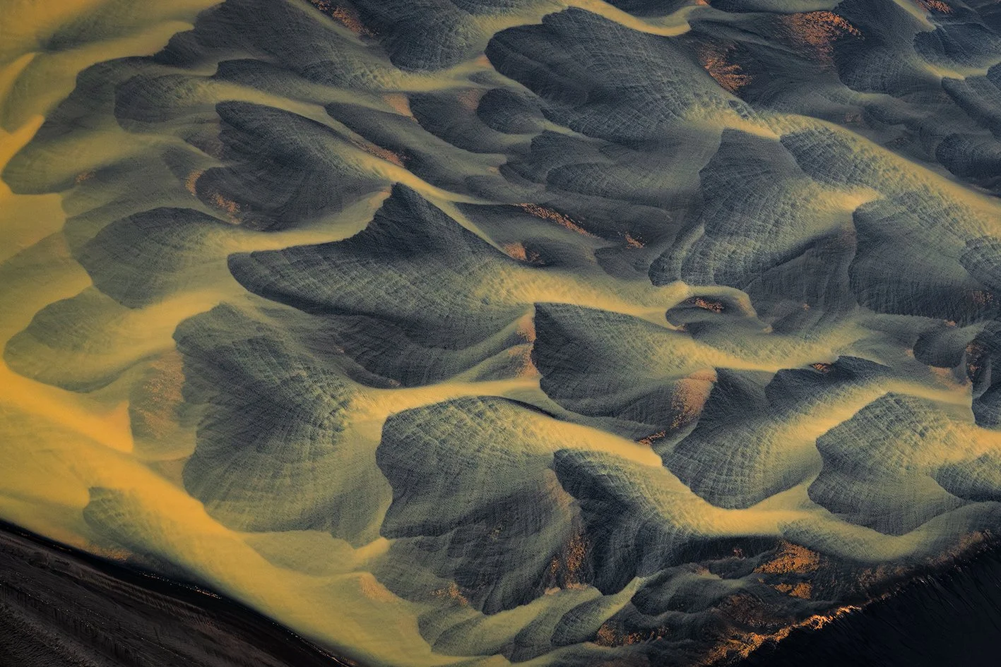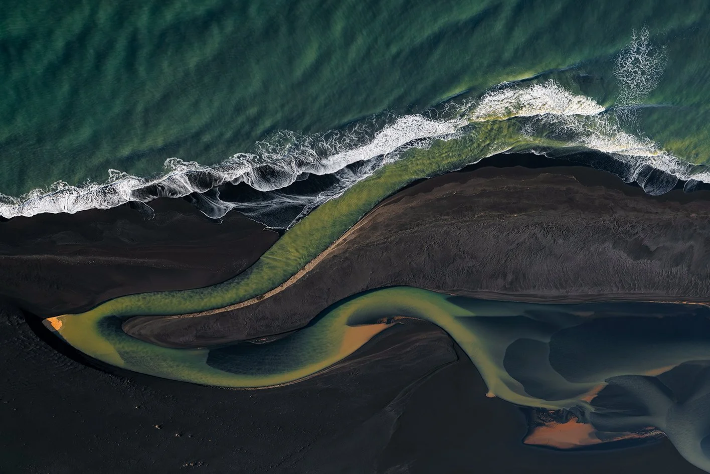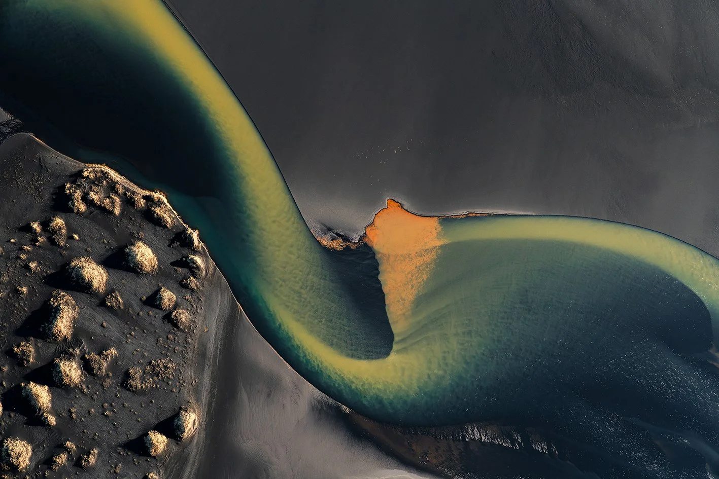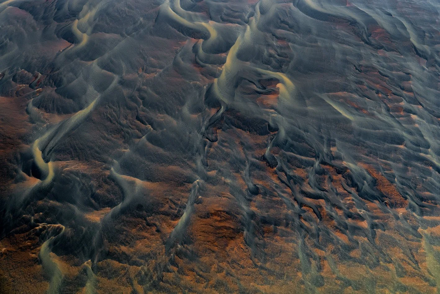 L’Islande m'accompagne depuis près de quinze ans. En 2021, je l’ai survolée. Un seul vol, deux heures suspendues dans les airs, et le temps s’est effacé, laissant place à un émerveillement sans fin : les rivières glaciaires, sinueuses et vivantes, révèlent une géographie en perpétuelle transformation et dessinent la terre comme une œuvre en mouvement.